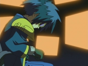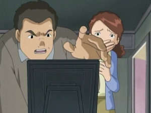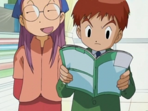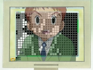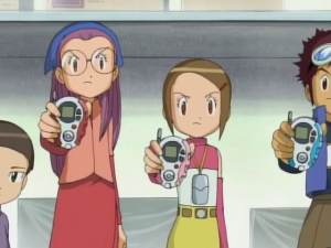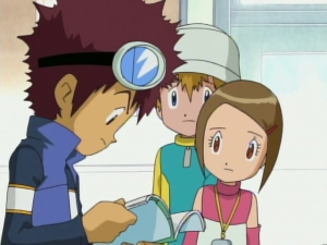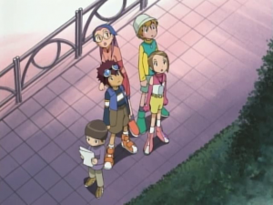 Koushiro introduit ensuite un CD-rom dans l’ordinateur et montre l’arrière-plan de la photo. Hikari se rappelle alors de quelque chose. Koushiro fait apparaître une carte à l’écran d’un quartier de la ville puis Hikari pose son doigt sur un des bâtiments en songeant que ce doit être celui de la photo. Koushiro l’approuve et Daisuke comprend que ce serait là où vit Ichijouchi Ken.