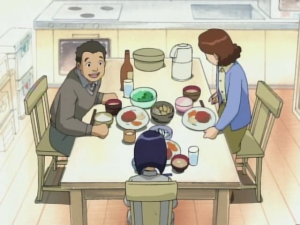 Au monde réel, Ken rentre chez lui et sa mère l’accueille en ajoutant qu’elle a préparé le diner pour lui. A table, sa mère dit qu’elle l’a vu à la télévision et si elle avait su qu’il était au parc, elle serait allée regarder. Le père ajoute que c’était une bonne réplique que celle sur 1% de naturel et 99% de travail. Ken repose cependant ses baguettes puis se lève. Sa mère demande ce qu’il a et Ken répond uniquement quelque chose puis sort de la pièce tandis que ses parents échangent tous deux un regard d’incompréhension.