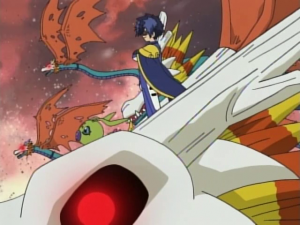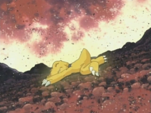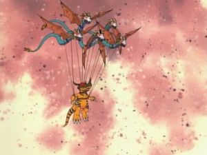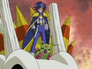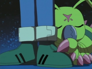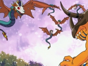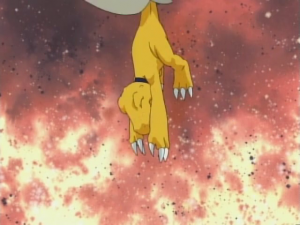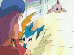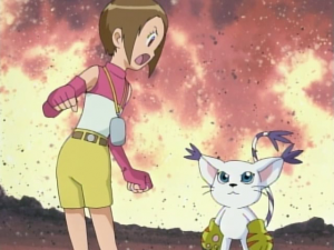 Hikari le reconnaît immédiatement alors qu’Airdramon capture à nouveau le partenaire de son frère et l’emporte. Hikari crie après Agumon et Takeru comprend qu’il s’agit de celui de Taichi. Alors que les Enfants Elus regardent, impuissants, le Digimon Kaiser emmener Agumon, Hikari crie de ne pas prendre Agumon.