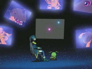 Dans sa base, le Digimon Kaiser ne cesse de programmer quelque chose sur son ordinateur, observé par Wormmon.