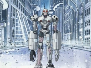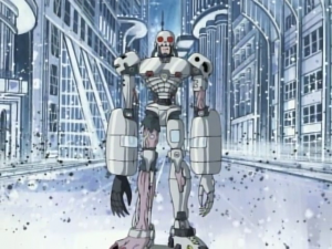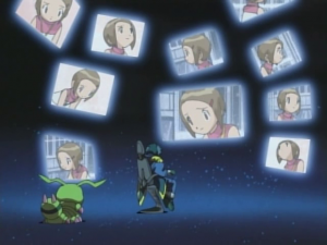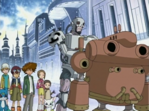 Serrant Hikari dans ses bras au-dessus de lui, Andromon murmure son nom et son programme la reconnaît comme la Hikari de ses données. La jeune fille pleure un peu en rappelant qu’ils avaient pris une photo et une larme mouille le visage du digimon. Celui-ci se rappelle alors des huit Enfants Elus puis morceau par morceau, il reconstitue la photo.