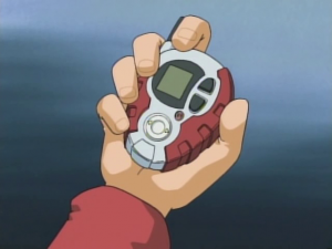 Taichi semble interrogatif et Koushiro répond qu’il les a beaucoup aidé par le passé. Taichi comprend alors à qui il fait allusion. Koushiro explique qu’à l’intérieur des données se trouvaient des mots comme Digital, Detect (détecter), Discover (Découvrir) et puisque ces mots commencent par la lettre D, il propose d’aller les nouveaux digivices D3. Il veut ajouter qu’ils ont découvert d’autres choses mais Chibimon l’interrompt pour dire qu’il a faim et Daisuke ajoute que lui aussi. Taichi demande alors à Koushiro de leur garder tout cela pour demain puis rappelle qu’ils doivent se dépêcher de rentrer tous à la maison car l’heure du dîner est déjà passée.