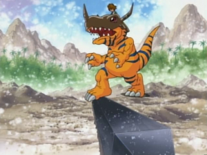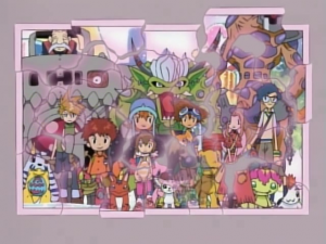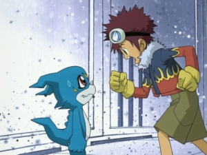 En retrait, Patamon songe qu’ils auraient dû faire cela depuis le début et V-mon explique que son partenaire voulait juste frimer.