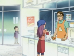 Au monde réel, Iori se tient juste devant le convenience-store des parents de Miyako et téléphone afin de parler à Taichi. A l’intérieur, Miyako prend de la nourriture tandis que son père lui demande de dire à son frère ou sa sœur, quand il ou elle rentrera, de venir surveiller le magasin pour lui. De retour à Iori, le petit garçon raconte son histoire à Taichi.