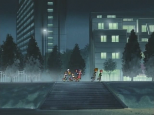 Après être sortis discrètement de l’école, Koushiro dit que Yamato lui a tout raconté et a vérifié le senseur du portail chez lui et a constaté qu’il était encore ouvert. Il leur demande ce qui serait arrivé si un professeur était venu éteindre l’ordinateur. Taichi s’exclame d’y aller doucement avec eux et ajoute qu’il voulait juste venir aussi mais Koushiro le reprend puis prend une voix plus calme et annonce qu’il a obtenu les résultats du décryptage des données du digivice de Miyako grâce à un ami qui vit en Amérique.
