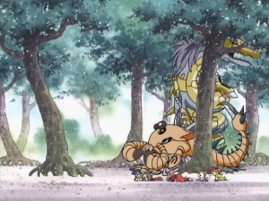 S’apercevant que leur ennemi est parti, Taichi songe que tout va bien à présent mais Mimi affirme le contraire. Jô explique que Togemon et Ikkakumon n’ont pas su battre Anomalocarimon et ont du évoluer au niveau supérieur pour avoir une chance et constate qu’ils seront toujours incapables de l’emporter sur MetalSeadramon. Taichi constate que Piccolomon avait raison de leur dire qu’il leur manquait quelque chose et se demande si ce pourrait être en rapport avec l’évolution.