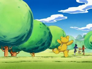 Pendant ce temps, Izumi et Junpei flottent sur un tronc dérivant au gré du courant d’une rivière. Izumi s’inquiète pour ses amis mais Bokomon al rassure et suppose que comme tous sont des Guerriers Légendaires, ils iront à Forest Terminal. Au même moment, Junpei essaie de réfléchir à un moyen d’attraper du poison.