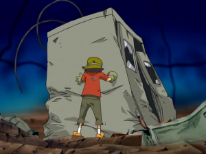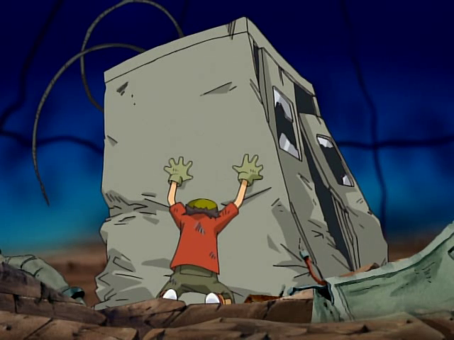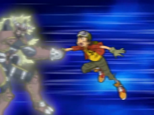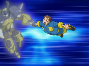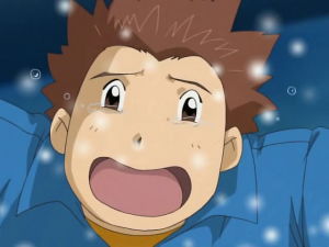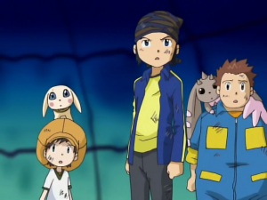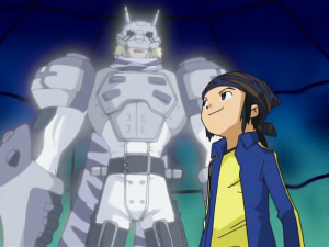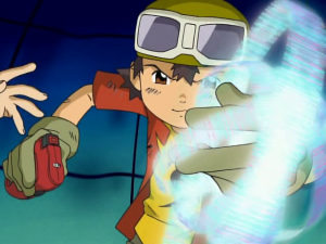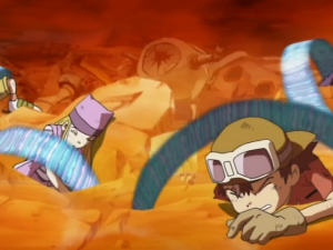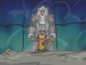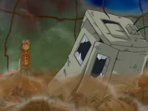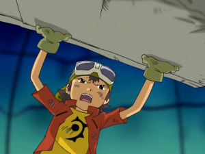 Takuya s’écroule au sol alors que Bokomon assure qu’ils ont tous fait de leur mieux et n’ont rien à se reprocher. Takuya s’exclame que ce n’est pas assez pour lui. une larme coule et tombe sur son digivice. A l’écran apparait Agunimon qui se matérialise devant lui en encourageant le garçon à persévérer en utilisant toute sa force. Sa main se pose sur celle de Takuya et la cabine s’écroule. Agunimon rappelle que c’est cela leur force et Takuya lui sourit.