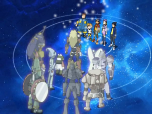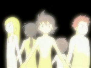 Les autres Spirits apparaissent derrière les autres enfants : Fairymon, Blitzmon, Wolfmon et Chackmon. Takuya dit comprendre maintenant que les Spirits combattaient toujours avec eux alors qu’ils croyaient se battre seuls. Les enfants serrent alors la main à leurs Spirits. Bokomon est tout étonné et Neemon se frappe avec sa culotte pour savoir s’il rêve ou non. Agunimon dit qu’eux les Spirits ont toujours été à l’intérieur de leurs digivices. Blitzmon ajoute qu’ils ont voyagé avec eux. Les Spirits de Ranamon, Mercuremon, Arbormon, Löwemon et Grottomon apparaissent aussi. Fairymon poursuit que le cœur des enfants a aussi résidé en eux.