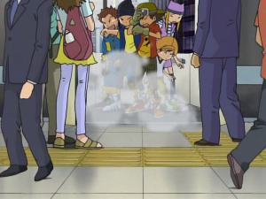 Au monde réel, un journaliste rapporte que l’étrange phénomène qui s’est produit un peu plus tôt a disparu mais qu’une enquête est en cours. Au même moment, les cinq enfants sortent de l’ascenseur au moment où le train de Jiyugoaka arrive à Shibuya. Takuya constate qu’ils sont revenus le même jour, à la même heure, que quand ils sont partis puis indique à ses amis la direction prise par Kôichi dans ses souvenirs. Les enfants descendent les escaliers et découvrent le lieu où Kôichi a eu accident. Horrifié, Kôji crie puis demande à un policier où son grand frère a été emmené.