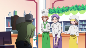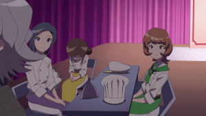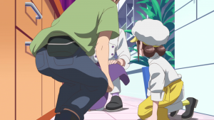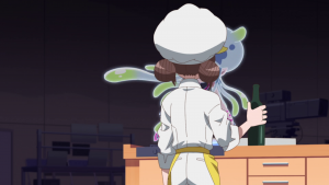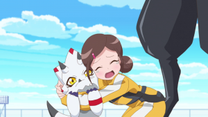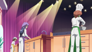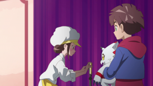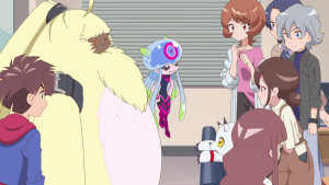 Les filles se rendent ensuite en studio pour une émission de cuisine où ils s’affrontent pour préparer le meilleur plat. Anna s’écarte pour fixer son smartphone afin de se filmer pour mettre la vidéo sur les réseaux sociaux. Dans la pratique, Anna perd son couteau, manipulée par le mystérieux digimon. Ils supposent à un accident et apporte un autre instrument. Le digimon joue avec le feu qu’allume Anna lorsque Jellymon arrive derrière elle en lui disant qu’il la protégera. Le mystérieux digimon s’agace de ces digimon mais se jure que son article se réalisera. A la fin du concours, Anna est la dernière du classement et l’organisatrice annonce que celle-ci a un gage qui est de faire un plongeon en chute libre. L’équipe juge que c’est une mauvaise idée. Gammamon s’approche d’Anna et demande si elle est inquiète et rappelle qu’il la protégera. Elle se décidera qu’elle le fera et que Gammamon la protégera. Kiyôshiro s’écrie que lui aussi la protégera.