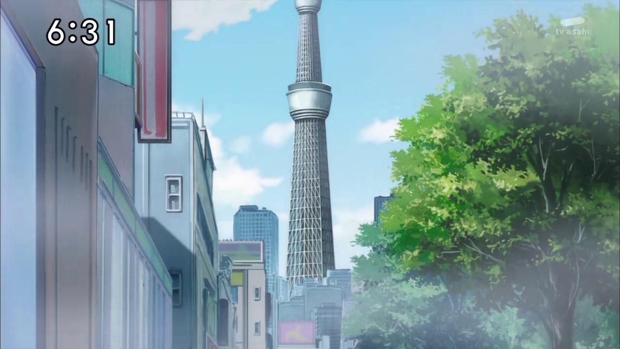 Cette image-ci de la Tour de Tokyo est cependant possible. Comparez avec la photographie droite : la Tour de Tokyo apparait ainsi sur toutes les deux images en arrière-plan. Question : pourquoi n’ont-ils pas fait cela tout le long de la série ?
