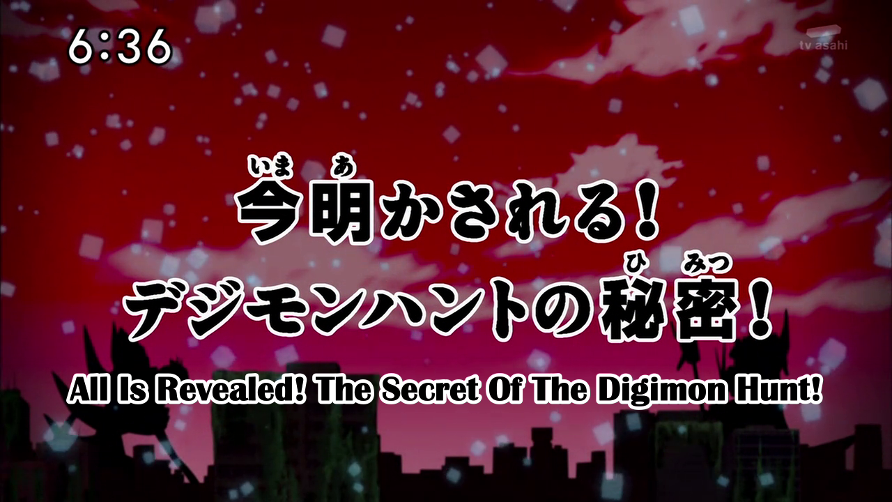 Airu demande à Ryoma où il était passé et Ryoma rétorque qu’il pourrait leur poser la même question. Taiki explique ensuite que tous les humains ayant été impliqués avec un digimon sont les seuls à ne pas avoir disparu tandis que Ren propose de commencer par capturer le digimon. Yuu rappelle que celui-ci manipule Digiquartz en entier et pourrait donc avoir un rapport avec l’ennemi rencontré lors de l’épisode précédent. Ryoma approuve et rappelle que le digimon qu’ils viennent de combattre était différent des autres. Tagiru ajoute que celui-ci pouvait évoluer sans l’aide d’un humain. Ryoma dit ensuite qu’un Hunter pourrait les avoir trahi en partageant leurs secrets avec l’ennemi. Hideaki s’exclame que c’est lui qui est le suspect de tous puis Tagiru l’embarque pour faire on ne fait quoi et Taiki décide qu’ils vont tous aller chercher le digimon.