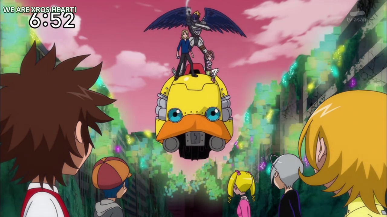 Shoutmon X7 attaque Diablomon puis libère Arresterdramon avant de lui porter le coup fatal et de le détruire. D’accord, le combat va hyper vite mais Shoutmon X7 est le digimon ultime de la saison, un peu normal quoi donc qu’il batte vite l’ennemi. Et j’oubliais le sublime détail, l’évolution et la bataille jouée sur la chanson We are the Xros Heart chantée par le grand trio composé de Wada Kouji, Tanimoto Takiyoshi et Miyazaki Ayumi !!! Les chanteurs ultimes de Digimon !!! Rien que pour cette chanson, Digimon Xross mérite d’exister !!! Cette chanson, c’est la chanson ultime de Digimon !!! Elle est trop géniale, trop parfaite !!! Euh ouais, je me calme.