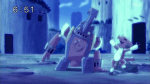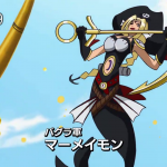 Les digimon deviennent affaiblis par cette chanson et Olegmon attaque plusieurs fois pour les mettre à terre. Il fait à nouveau retentit la chanson. Alors que Taiki se précipite vers Shoutmon, il est repoussé et le digimon déclare que rejoindre cet équipage l’aidera à devenir roi plus vite. Il chante à son tour, rejoint par Greymon, Mervamon, Knightmon, Sparrowmon, les Pawnchessmon et Cutemon. Taiki n’arrive pas à croire que Olegmon ait pu prendre leur amis. Olegmon rit et confirme qu’il n’y a rien au mieux au monde comme trésor que d’avoir des amis. Il demande à Taiki s’il ne pense pas pareil et s’ils ne pourraient pas être de grands camarades. Taiki se tourne vers Kiriha qui confirme que leur ennemi est incroyablement fort et tous deux conviennent de se replier. Derrière eux, Nene est cependant anéantie par les paroles de Sparrowmon sur ses cheveux.