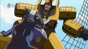 Shoutmon se tourne vers Olegmon et refuse de lui pardonner pour avoir forcé des amis à se combattre. Taiki le fait évoluer en OmegaShoutmon. Une abtaille terrible s’engage entre Olegmon et OmegaShoutmon où tous deux déchainent leurs meilleurs coups. Olegmon reconnait que son adversaire a une bonne intuition puis le remercie d’avoir été une grande aide car ila retrouvé grâce à lui son trésor numéro un.
