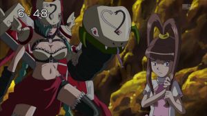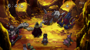Lors de leur transfert entre les quatrième et le cinquième royaumes, Taiki songe qu’ils ont dépassé la moitié des royaumes à conquérir. Kiriha remarque le château effrayant, le Nid Démon, où les attend l’empereur Baguramon. Shoutmon s’exclame que ce sera le lieu de leur bataille finale. Kiriha rappelle que ce ne serait pas si simple et que les gaz entourant l’endroit le rendent étroits. Il montre ensuite le grand cristal dont la couleur s’assombrit de plus en plus et suspecte que les ténèbres se renforcent. Nene redoute que l’ennemi puisse continuer à devenir plus fort en dépit de leurs victoires contre les Death Généraux et déclare qu’ils doivent se dépêcher. Taiki approuve puis aperçoit la sortie du tunnel.