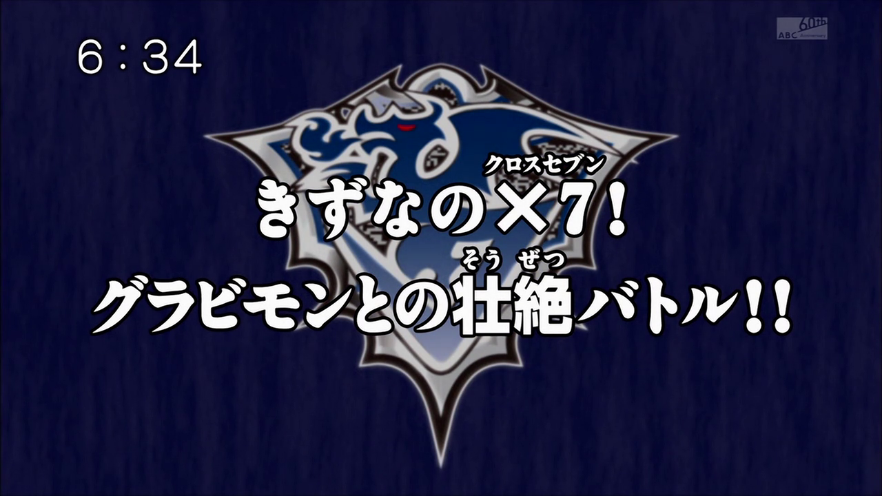 Titre en japonais : きずなのX7!グラビモンとの壮絶バトル!!/Kizuna no Kurosu Sebun! Gurabimon no Sōzetsu Batoru!!