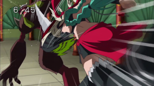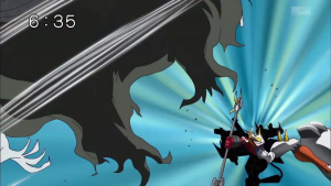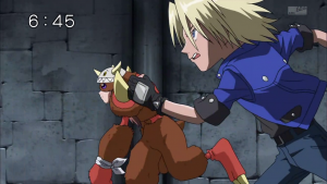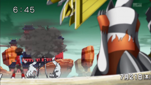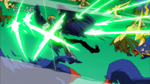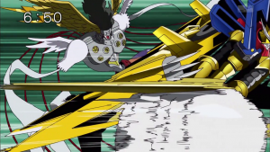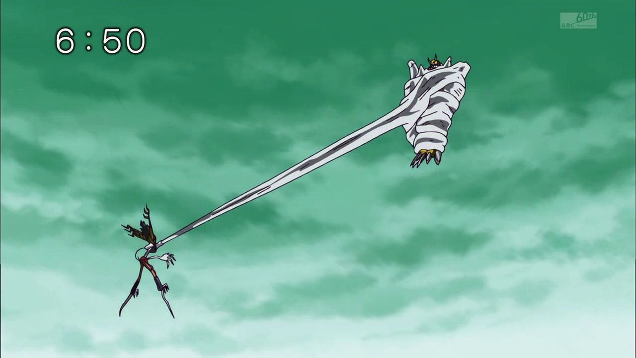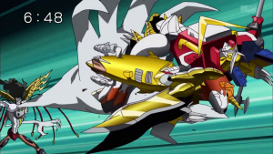 Néanmoins, Gravimon esquive et apparait derrière eux. Il ne cesse de se déplacer incroyablement vite. Kiriha décide de combattre dans les airs. Shoutmon X7 finit par s’écraser au sol mais lui et Kiriha se redressent et repartent à l’affrontement.