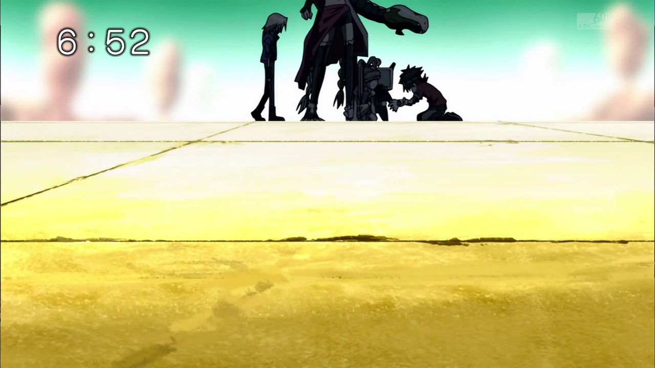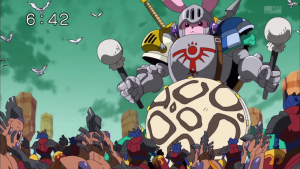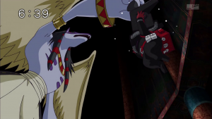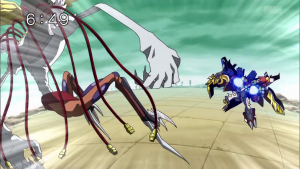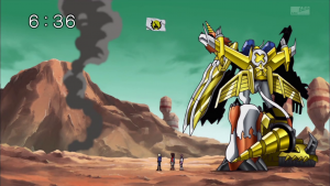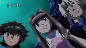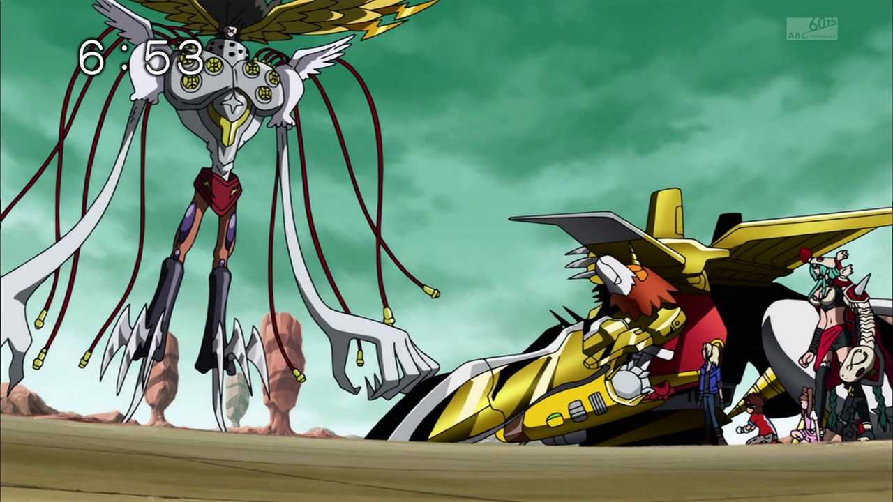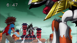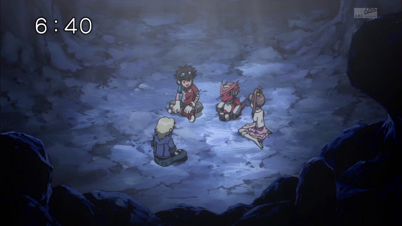 Dans la forteresse, le petit groupe arrive à la porte blindée que Mervamon détruit de toute sa force. A l’intérieur ne repose cependant que des richesses. Monitarimon vient alors rapporter avoir fouillé toutes les pièces et que la source vitale de Gravimon ne se trouve nulle part. Mervamon suppose qu’ils ont dû faire une erreur et Kiriha comprnd que Taiki va avoir des ennuis si cela se poursuit.