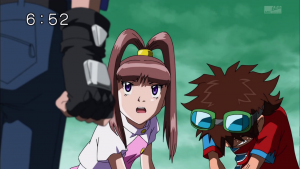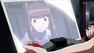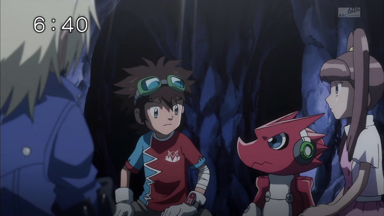 Soudain, Taiki ressent une forte terrible douleur et découvre un gonflement au coude. Il suppose que ce doit le résultat d’un mauvais coup et Nene s’en inquiète mais le garçon assure ne pas avoir si mal. Shoutmon 7X intervient et s’étonne que le chemin vers le nouveau royaume ne s’ouvre. Taiki remarque ensuite que le drapeau est toujours celui de l’Empire Bagura. Nene décide de faire sortir les Monitarimon puis réalise avec eux une digixross qui donne naissance à Hi-Vision Monitarimon puis lui ordonne de s’introduire dans la forteresse de Gravimon afin de collecter des information. après le départ du digimon, la jeune fille décide de partir car leur groupe représente une cible trop facile pour l’ennemi et qu’il faut aussi soigner la blessure de Taiki. Aucun ne remarque non loin de là un câble rouge sectionné.