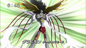 Pendant ce temps, Taiki aperçoit l’armée revenir vers eux et Gravimon décide que ce sera à lui à présent de s’amuser. Il sort son Darkness Loader et absorbe tous les digimon autour de lui pour réaliser une digixross avec eux et devenir Gravimon mode Ténèbres. Il attaque violemment Shoutmon X6 et le jette au sol. Cuberdarmon apparait alors dans son dos et l’attaque. Nene, Mervamon et Hi-Vision Monitarimon rejoignent Taiki. Kiriha annonce qu’il va s’occuper de battre Kiriha et monte sur les épaules de Shoutmon X7. Gravimon rit et s’exclame que le résultat sera toujours le même. Kiriha rétorque que si sa capacité à se régénérer est le problème il l’attaquera avant qu’il ne puisse l’utiliser.  Gravimon demande s’il en sera capable. Kiriha lui crie de la fermer puis ordonne à Shoutmon 7X d’attaquer.