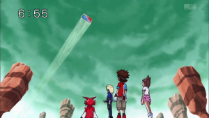 Après cela, Kiriha s’exclame à Taiki qu’il y a une limite à la folie et Nene ajoute que c’était trop même pour protéger Kiriha. Taiki déclare avoir pensé que al source vitale le quitterait s’il se mettait en danger. Kiriha est surpris puis dit qu’il est vraiment impossible. Dans son X Loader, Dracomon s’exclame que Deckerdramon a eu sa revanche. Kiriha approuve puis arppelle que ce n’est pas fini. Shoutmon confirme et rappelle qu’ils doivent aller au royaume suivant. Kiriha songe qu’après ce sera la bataille finale et prie pour que DEckerdramon les observe. Taiki annonce alors qu’il les voit vraiment.