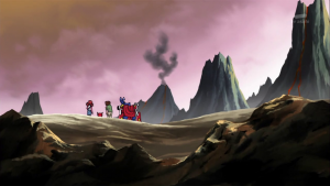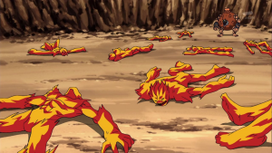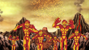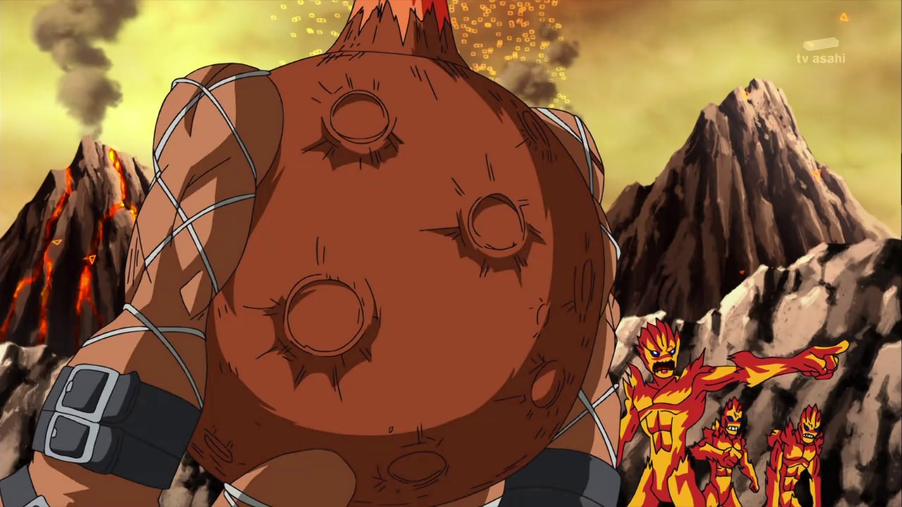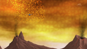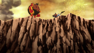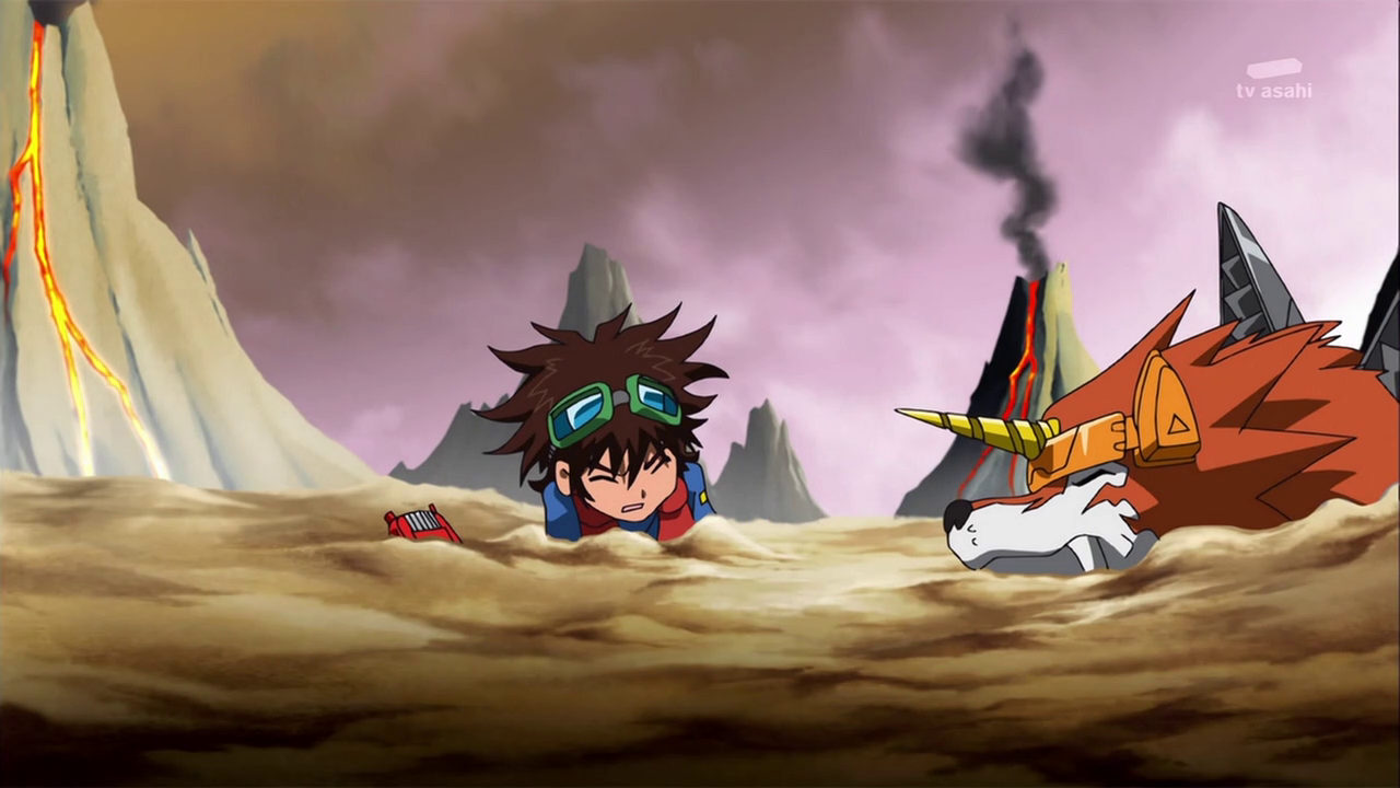 Peu après, l’équipe sort de la caverne devant AncienVolcamon qui lance ses troupes à leur assaut. Shutmon et Ballistamon portent les premières attaques puis Dorurumon repousse les Meramon grâce à sa tornade. Furieux, AncientVolcamon les absorbe tous et grossit pour se mettre à cracher du feu de chaque partie de son corps. Dorurumon le suit jusqu’au sommet d’une falaise et se tient face à face.
