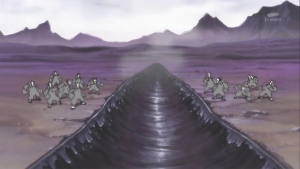 Peu après, BlueMeramon conduit en sécurité l’équipe au travers d’une galerie et Taiki réclame des explications. BlueMeramon assure que Dorurumon n’est pas un traitre. a l’époque, Tactimon leur avait ordonné de conquérir une certaine zone mais la résistance des digimon avait grandement réduit l’effectif  de leur escadron et Dorurumon est venu les sauver en leur ordonnant d’évacuer la Zone. BlueMeramon a hésité car cela risquait de comparaitre en cour martiale mais Dorurumon lui a dit de répéter que c’était ses ordres.  Néannmoins, le déluge de flammes a déjà commencé et BlueMeramon s’est retrouvé blessé mais Dorurumon ne l’a pas abandonné et l’a conduit en sécurité. De retour au présent, Dorurumon expose que c’est la stratégie de l’empire Bagura : sacrifier les soldats pour remporter la victoire. C’est ainsi qu’il a commencé à les haïr. Il a ainsi décidé de déserter et de fuir. C’était trois ans plus tôt.