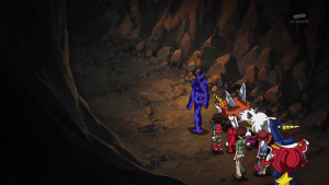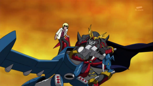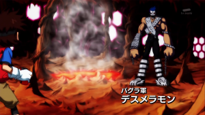Dans la caverne, BlueMeramon montre à Taiki l’endroit où est gardé son X Loader mais ils sont surpris par DeathMeramon qui attaque BlueMeramon en l’accusant d’être un traitre.  Shoutmon riposte et le supprime. Tout le monde entoure BlueMeramon qui sourit à Dorurumon et déclare avoir été ravi que al vie qu’il a sauvé a pu lui être utile.