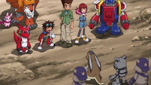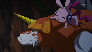 En songeant à ces informations, Akari comprend que ce n’était pas du tout Dorurumon qui a attaqué le village de Cutemon. Taiki ajoute qu’il savait bien que Dorurumon était une bonne personne. Cutemon vient se pendre au cou de Dorurumon et s’excuse d’avoir un instant douté de lui.