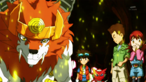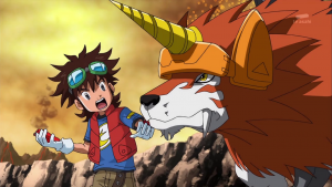 Face à la situation, Taiki décider d’utiliser un digimémory et introduit dans X loader celui de Garurumon. Le digimon se matérialise et lance son attaque Fox Fire. sur AncientVolcamon. Dorurumon rejoint Taiki et estime que cela n’était pas nécessaire mais ce dernier réplique qu’il souhaite devenir une personne protégeant ses amis au péril de as vie, exactement comme Dorurumon. Dorurumon songe que s’il devient son ami, il pourra un jour faire une double xross et Taiki assure qu’il pourra le faire autant de fois que possible. Dorurumon dit qu’il est la première personne à lui parler ainsi quand Shoutmon accourt vers eux. Dorurumon demande alors à Taiki de réaliser une digixross entre lui et Shoutmon.