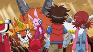 Durant ce temps, Akari sourit et constate que Dorurumon a finalement rejoint leur équipe. Dorurumon proteste que c’est toujours en réflexion alors que Cutemon s’agite sur sa tête. Taiki leur rappelle qu’ils sont amis et proposent de voyager ensemble et Dorurumon finit par reconnaitre qu’avoir des amis n’est pas une mauvaise chose. Soudain une lueur émane du sol d’où Taiki reçoit le code couronne de la Magna Zone.Les anciens arrivent vers eux et Taiki leur confie l’endroit en leur demandant d’en prendre soin. A distance, Nene les observe. Taiki décide ensuite de partir vers une nouvelle zone en promettant aux digimon de revenir s’ils ont encore besoin d’aide.