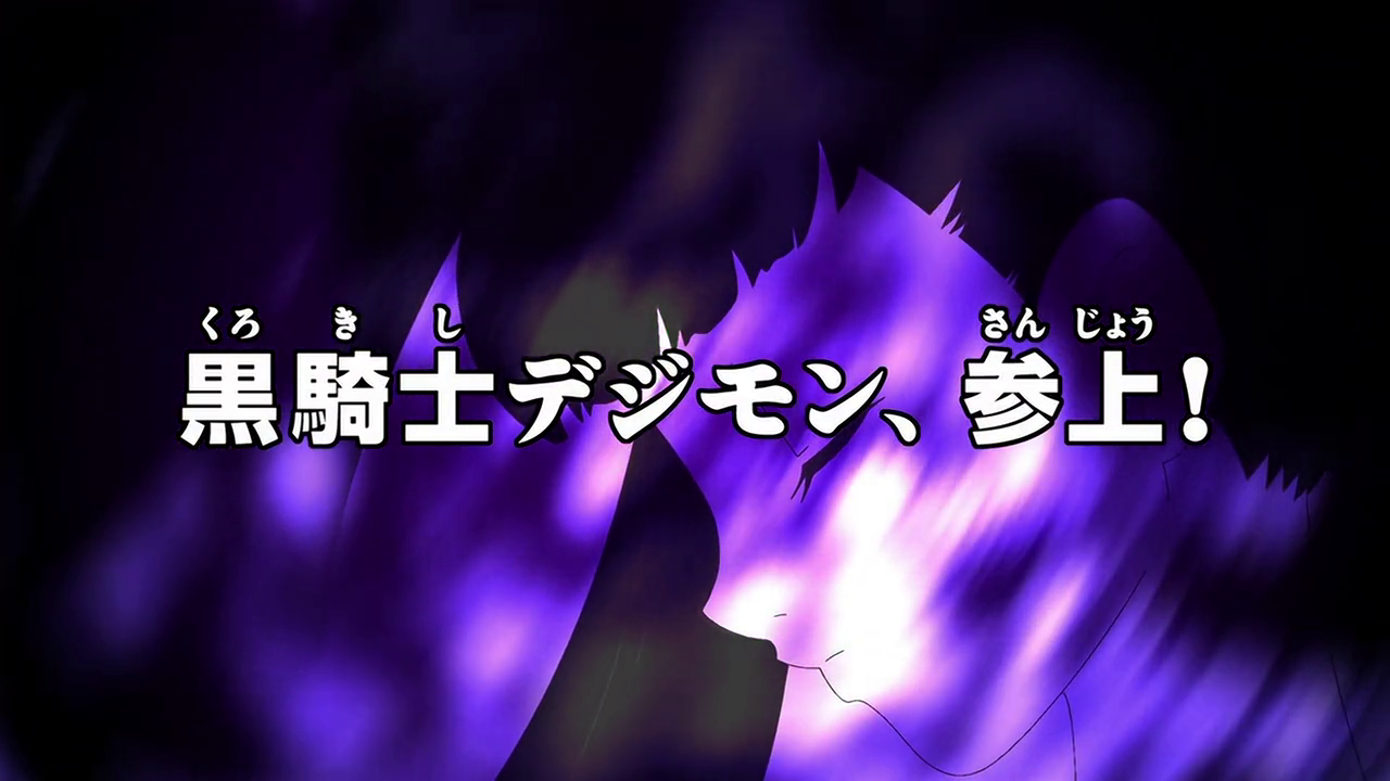Titre en japonais : 黒騎士デジモン、参上!/Kurokishi Dejimon, Sanjou! / Le sombre chevalier Digimon, entrée !