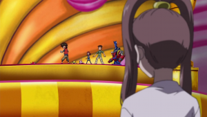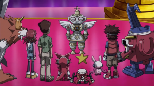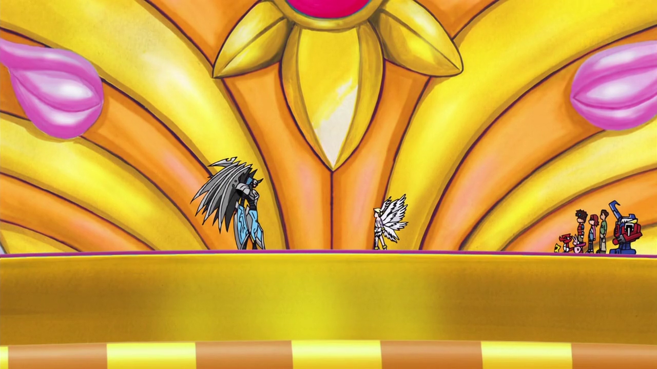 Depuis une estrade officielle, SlashAngemon s’excuse publiquement des désordres causés par la police puis annonce décider de céder le pouvoir au gentil Lucemon sans attendre les élections. La foule est enthousiaste et crie avec ferveur le nom de leur nouveau président. L’équipe de Xros Heart assiste à l’événement avec plaisir lorsque Zenjirô remarque l’absence du héros du jour. Shoutmon et Starmon se décident à aller à sa recherche, accompagnés des Pickmon. Après leur départ, Taiki songe que la Zone est redevenue paisible sans avoir eu à combattre.
