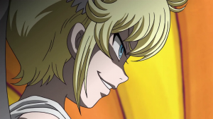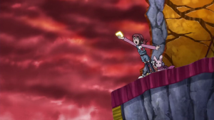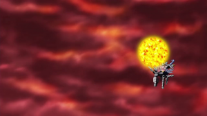Taiki ordonne alors d’utiliser la boule restante sur Lucemon. Ce dernier la reçoit, accompagné d’une attaque au fusil. Lucemon bascule et s’écrase au sol. Alors que les digimon reviennent à la forme initiale, le code couronne s’envole. Akari arrive à l’attrape mais, au bord du vide, perd l’équilibre et va tomber. Cutemon et Donkondomon la rattrapent.