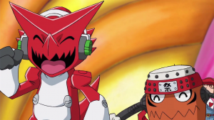 Shakkoumon s’approche de Lucemon et lui passe le bracelet au bras. Un sourire machiavélique apparait sur le visage de Lucemon qui est remarqué par Taiki et le laisse perplexe. Shakkoumon déclare ensuite se sentir plus léger et ajoute que le chef de cette zone ne doit pas être une mauvaise personne. SlashAngemon s’excuse et dit avoir voulu empêcher que l’Empire Bagura n’entre ici et a alors durci les lois dans cette optique sans savoir pourquoi