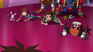 Après son départ, Taiki secoue Shoutmon. Lucemon s’amuse et constate qu’ils ne sont plus que des déchets. Autour d’eux, les digimon tremblent et se sentent nauséeux.