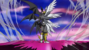 Lucemon dénonce leur alliance alors que dans le X Loader, DarkKnightmon sent un pouvoir intéressant. Lucemon se retrouve alors consumé par le pouvoir de l’énergie et celui de DarkNightmon, tenant toujours Nene dans ses bras.