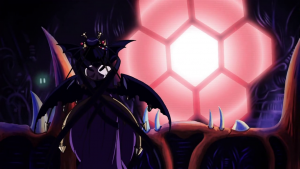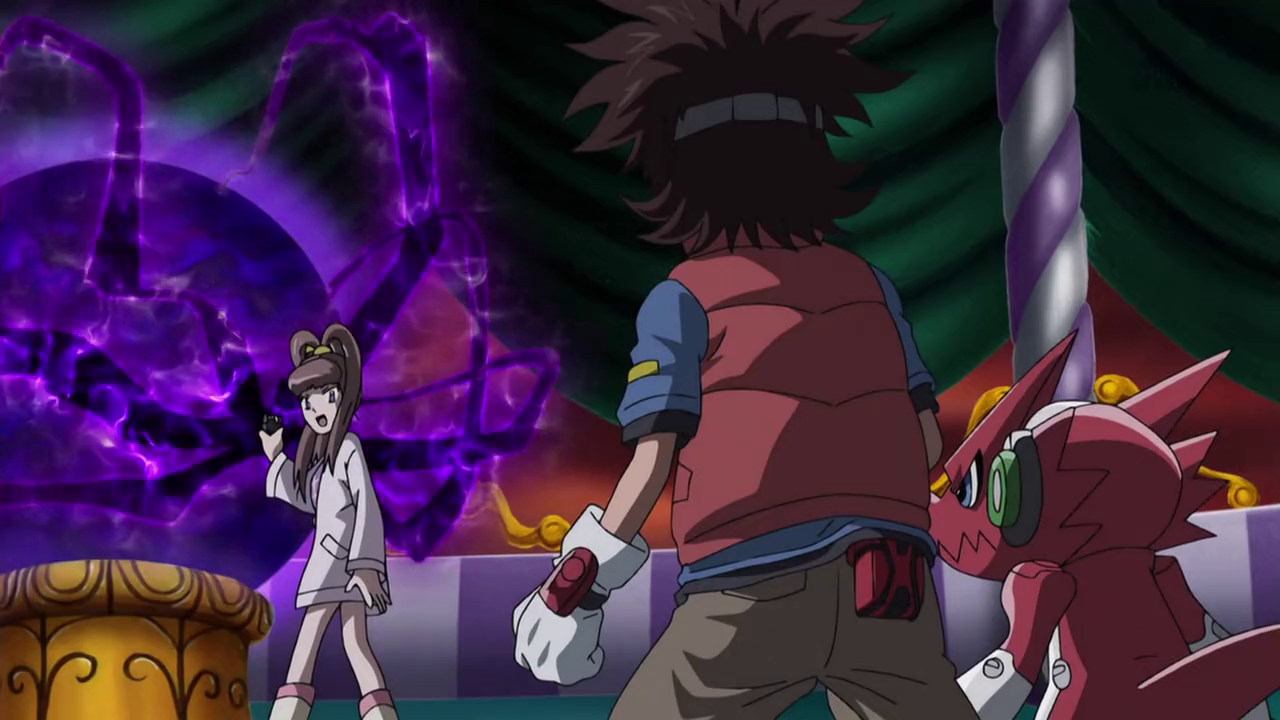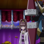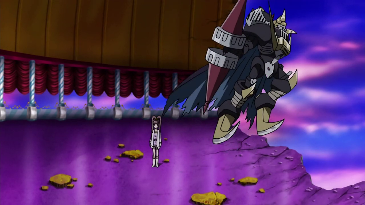 Dans le temple des ténèbres, Nene et DarkKnightmon contemplent une grosse sphère sombre. DarkKnightmon demande à retourner dans le X Loader puis ressent la puissance de cette énergie et exige que l’on absorbe tout.