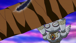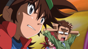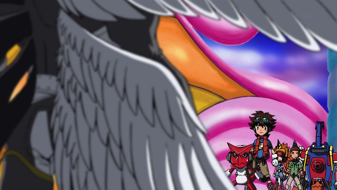 Après cela, Taiki remercie Shakkoumon pour son aide mais ce dernier s’excuse car il se sent responsable du désastre et déclare être un mauvais juge de la personnalité. Il leur demande ensuite de voler jusqu’au temple afin d’arrêter l’énergie maléfique. Taiki est cependant gêné par la distance et le vide. Shakkoumon décide de leur apporter son concours en les absorbant d’un rayon de lumière sorti de ses yeux pour le rediriger vers le temps.