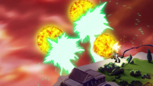 En contrebas, Shakkoumon conseille à Belbebumon de les laisser et d’aller les aider à combattre Lucemon. Ce dernier expose que tous les digimon de cette Zone vont se battre jusqu’à ce qu’il n’en reste qu’un seul : lui. Il alnce sur l’équipe une grosse boule de feu mais Beelzebumon essaie de la viser d’un tir de mitraillette. Il la manque, horrifié.