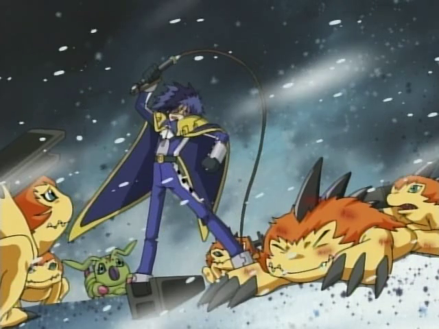 Dans un secteur enneigé du Digital World, le Digimon Kaiser fait travailler des Gizamon mais trouve ceux-ci trop lents à son goût. Près de lui, Wormmon lui montre une veste chaude, ce qui exprime son souci de veiller à son bien-être, mais le Digimon Kaiser lui ordonne de s’éloigner de lui puis fouette les Gizamon pour les obliger à travailler plus vite. Soudain, Gomamon retient le fouet et s’exclame qu’ils sont fatigués. Le Digimon Kaiser utilise le fouet pour l’éjecter puis dit que tout se passera bien pour ceux qui attaqueront Gomamon.