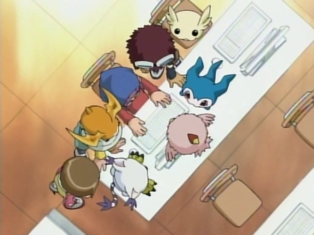 De retour à la salle des ordinateurs, Daisuke songe que le Digimon Kaiser doit être en colère d’avoir perdu un secteur qu’il venait juste de conquérir, ce qui l’amuse. Iori demande ensuite à Jô s’il reviendra et celui-ci répond positivement. D’ailleurs, il songe que son Digimental pourrait être quelque part. Iori lui propose de venir aussi chez lui car son grand-père serait content. Jô accepte quand Hikari lui demande si elle peut venir aussi car elle a entendu que sa mère faisait de délicieux ohagis. Daisuke s’exclame que si Hikari vient, il vient aussi mais Hikari dit qu’il ne peut pas. Daisuke veut savoir pourquoi et celle-ci lui répond que Chibimon et lui prendraient sa part. Daisuke affirme que Chibimon ne viendra pas. Le petit digimon s’avance et veut savoir pourquoi quand Miyako et Takeru décident de venir aussi. Iori conclut qu’il demandera à sa mère d’en faire beaucoup.
