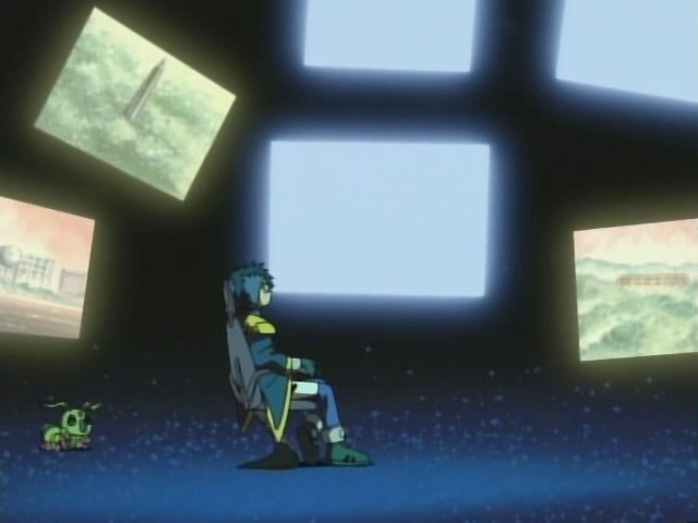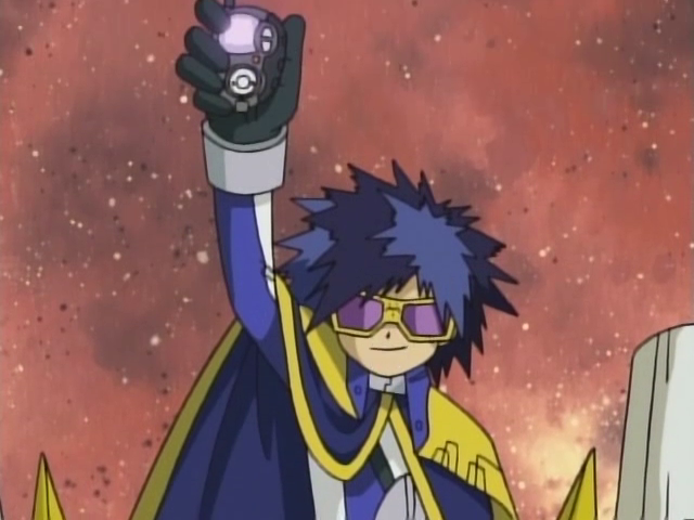 Dans sa base, le Digimon Kaiser est assis dans son fauteuil. Autour de lui, les écrans n’affichent que des images de Greymon et à ses pieds, Wormmon se frotte. Soudain, le Digimon Kaiser se rend compte que les Enfants Elus arrivent puis se lève et donne un coup de pied à Wormmon. Il s’approche d’un écran tandis que Wormmon déclare être content car il peut être toujours avec Ken maintenant.