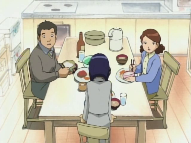 Au monde réel, Ken rentre chez lui et sa mère l’accueille en ajoutant qu’elle a préparé le diner pour lui. A table, sa mère dit qu’elle l’a vu à la télévision et si elle avait su qu’il était au parc, elle serait allée regarder. Le père ajoute que c’était une bonne réplique que celle sur 1% de naturel et 99% de travail. Ken repose cependant ses baguettes puis se lève. Sa mère demande ce qu’il a et Ken répond uniquement quelque chose puis sort de la pièce tandis que ses parents échangent tous deux un regard d’incompréhension.