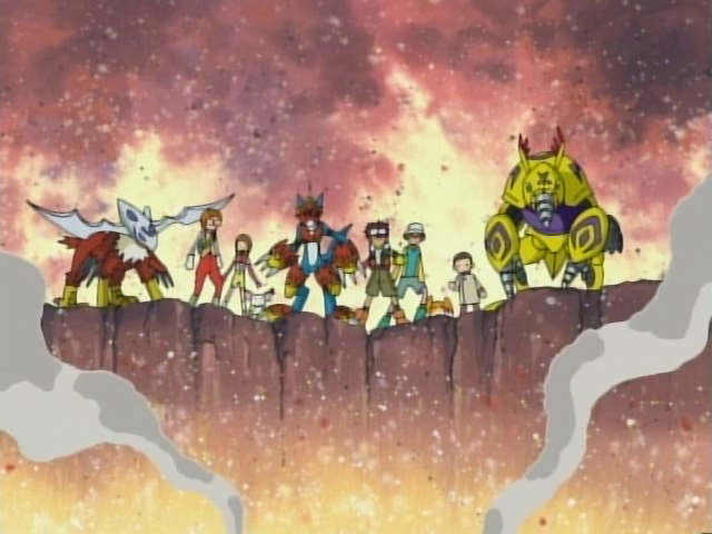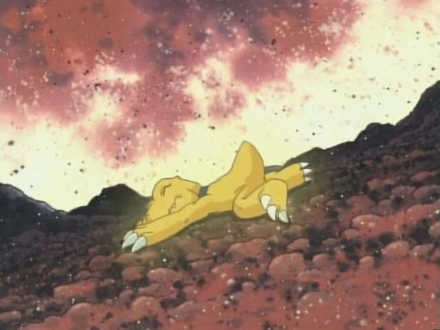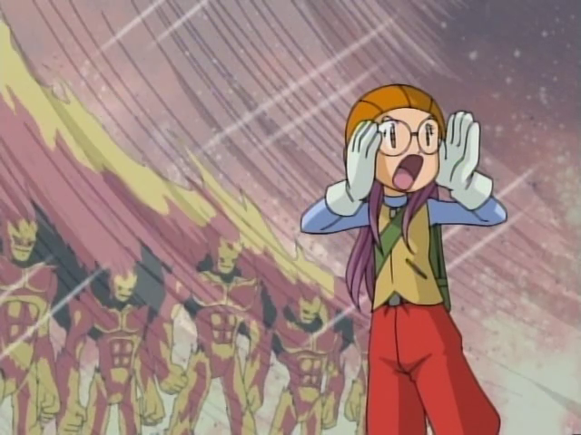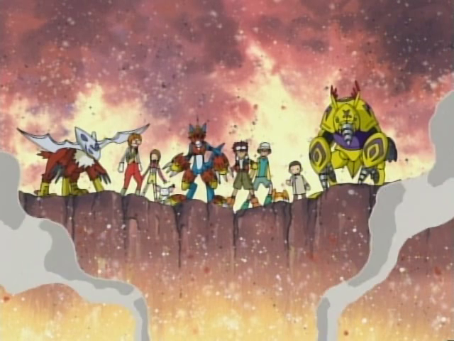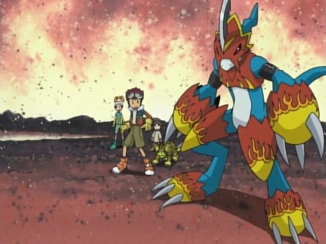 De retour au combat, Iori décide d’essayer et fait évoluer Armadimon en Digmon. Celui ci lance son attaque Big Crack qui crée une faille dans le sol et fait tomber tous les Meramon dans la lave. Cependant, ceux ci peuvent en sortir et Daisuke conseille d’être prudent. Les Meramon reviennent vers eux et Miyako s’exclame qu’il n’y a pas de fin avec eux.