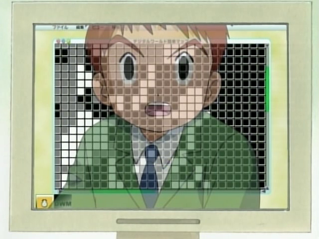 Koushiro introduit ensuite un CD-rom dans l’ordinateur et montre l’arrière-plan de la photo. Hikari se rappelle alors de quelque chose. Koushiro fait apparaître une carte à l’écran d’un quartier de la ville puis Hikari pose son doigt sur un des bâtiments en songeant que ce doit être celui de la photo. Koushiro l’approuve et Daisuke comprend que ce serait là où vit Ichijouchi Ken.
