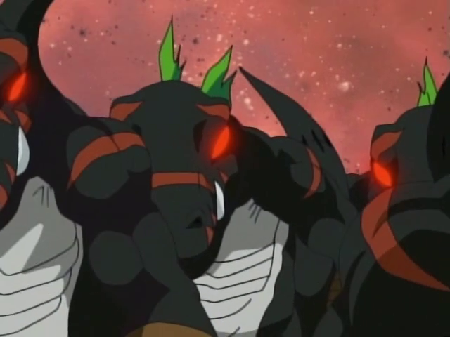 Soudain, Skullgreymon lance son attaque Ground Zero qui tombe sur la Dark Tower et la détruit. Le Digimon Kaiser constate que c’est un échec et appelle cinq Darktyranomon qui entourent Skullgreymon. Miyako se demande s’il s’agit de nouveaux ennemis puis les Darktyranomon lancent leurs flammes sur Skullgreymon.