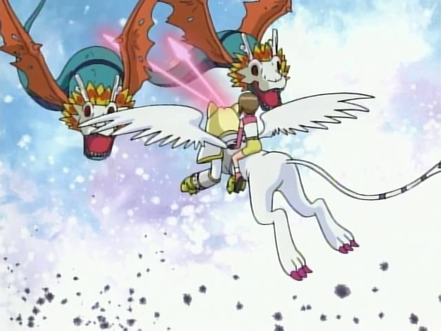 Au sol, Tailmon et Patamon décident d’y aller aussi puis leurs partenaires les font évoluer en Pegasmon et Nerfertimon. Tous deux envoient leurs attaques Curse of Queen et Silver Blaze, touchant Airdramon et le Digimon Kaiser tombe mais parvient à retomber sur ses pieds.
